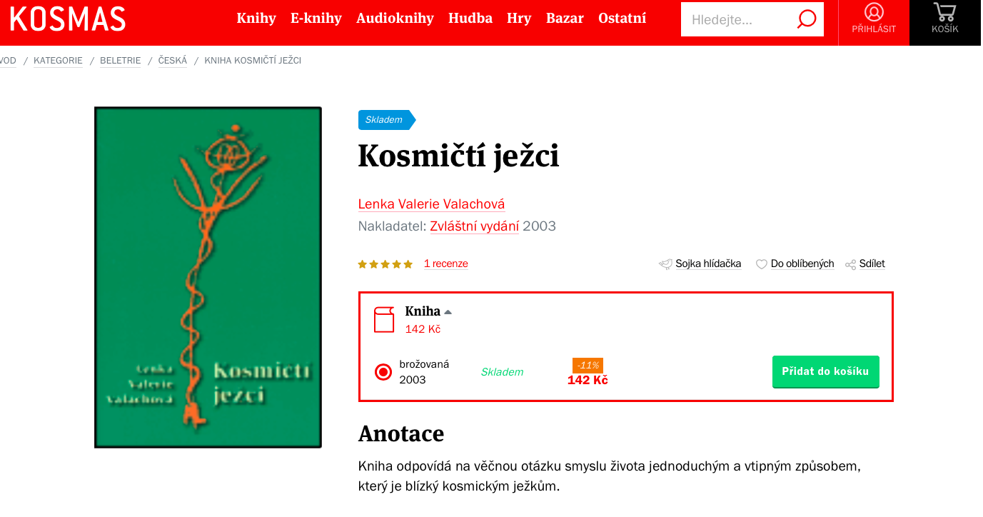 Lyrický román Lenky Valerie Valachová - Kosmičtí ježci. První a jediné vydání v České republice v Nakladatelství Zvláštní vydání Brno