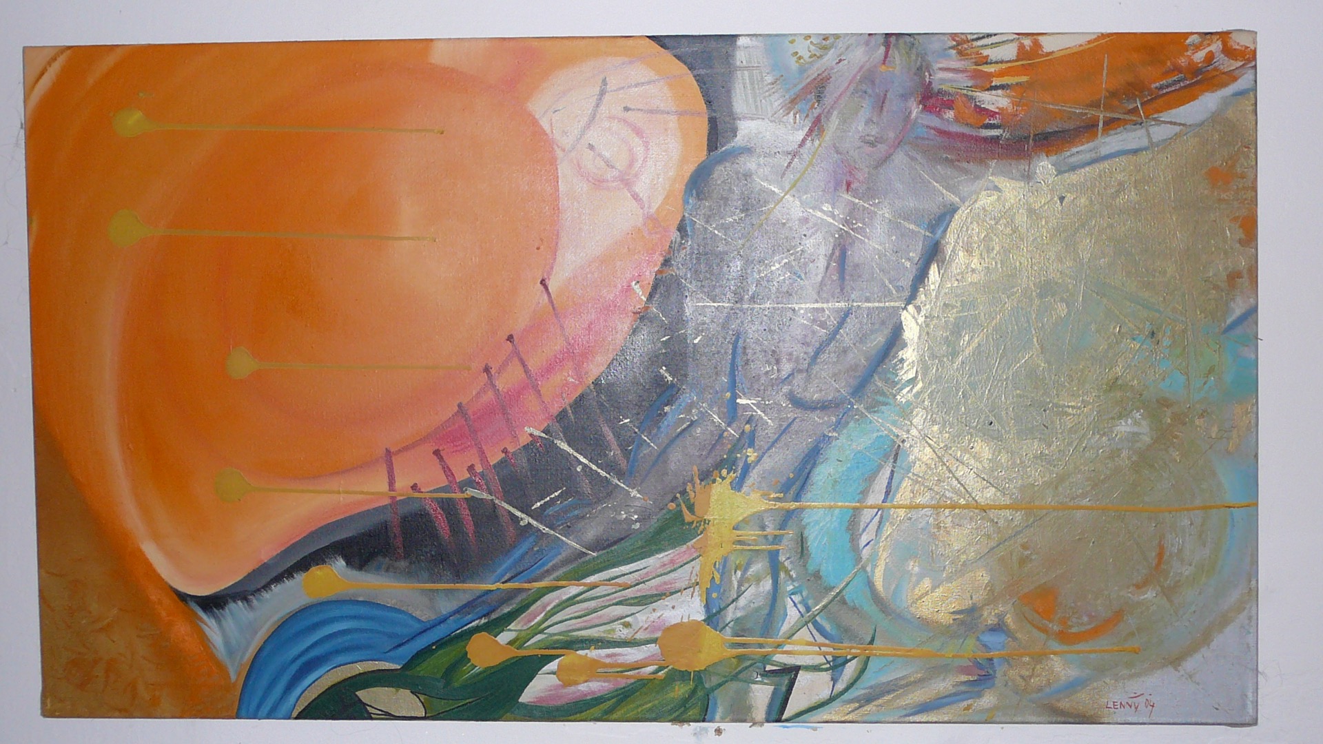 Gallery Cafe Mungo Prague - exhibition of paintings using signature Lenny AL, mixed medial, oil on canvas