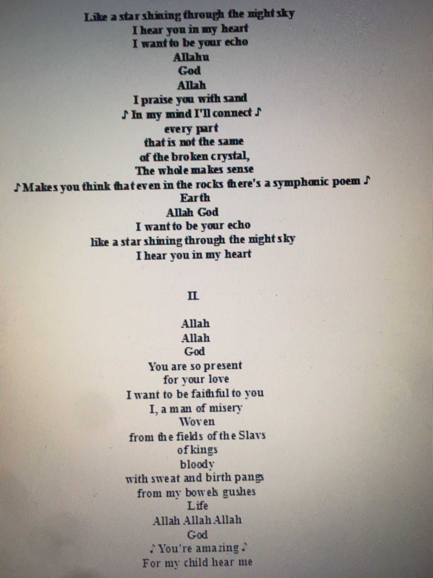Project Enlightened Planet Earth - básnické vize a mapování prostoru, hledání básní a vyprávění, obnova něžné úcty k posvátné tváři planety Země v krajině, mnohá místa naší planety jsou posvátná, a nemohou být zničena. Hluboká poklona a úcta k Bohu Alláhu, čtení písma, studium tradic a upevnění podpory tradiční kultury.